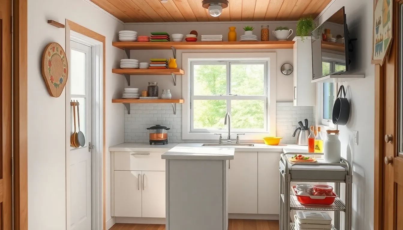 Essential appliances play a crucial role in tiny kitchens. Compact models like microwave-convection ovens save space and combine functionalities. Induction cooktops offer quick heating on a small footprint, freeing counter space for food prep. Dishwashers designed for tiny homes fit under counters and streamline cleanup without crowding. Invest in multi-functional tools, such as immersion blenders or food processors, to reduce clutter while expanding culinary options. Minimize appliance sizes to ensure room for essential cooking tools, making it easier to create gourmet meals in limited space.